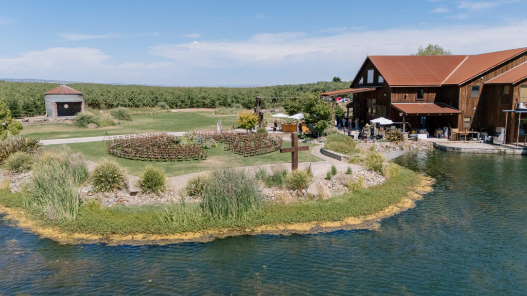 Quincy Lake Farm feels like a little slice of Napa-esque countryside magic tucked right here in the Central Valley. The lake and waterfall feature are highlights that so many couples love to use for photos — and when the sun sets behind the water and everything turns peachy pink, it is genuinely one of the most beautiful ceremony backdrops I’ve seen in this region.